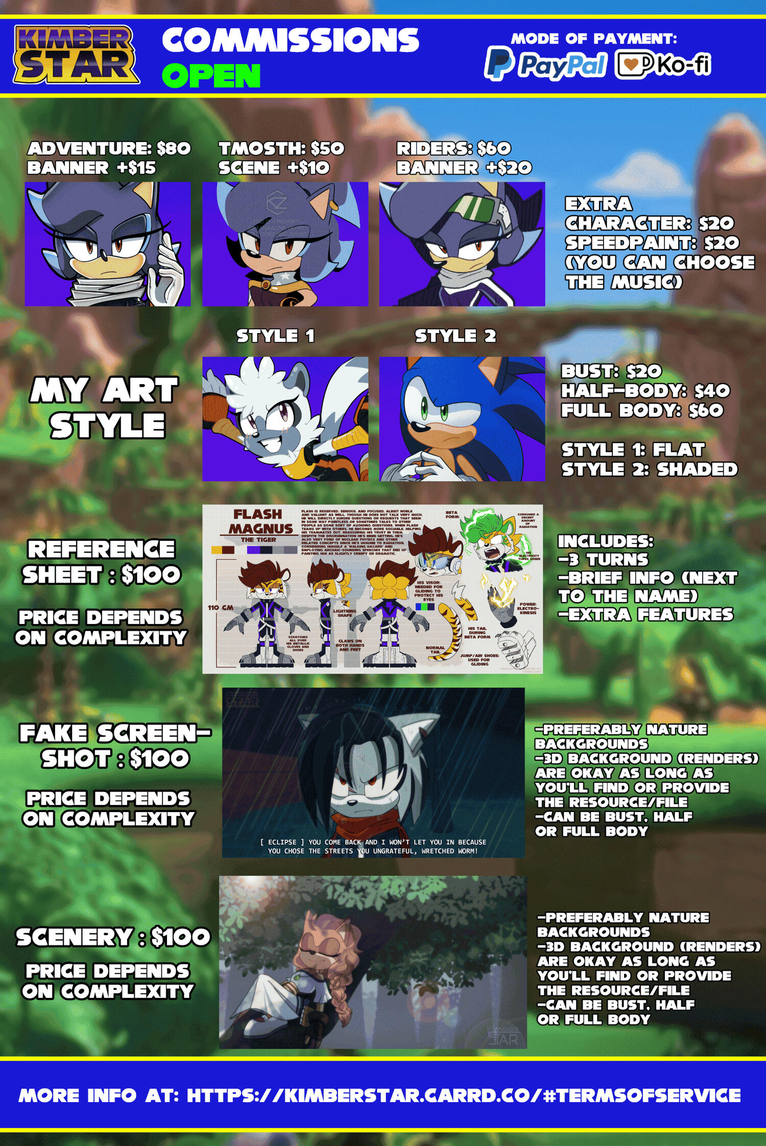 You must read and agree to my TERMS OF SERVICE if interested. The ones I showed on my commission list are my offers if you want to commission me. We can still make changes or ask for a "Commission Request" on what it is that you want me to draw for you IF none of my offers are close to it..Another thing is that there will always be a solid background for sketch, colored sketch or flat colored depending on what fits your character! However it may change if you want a more detailed background, like nature and such. Got any questions? You can contact me through discord or twitter.